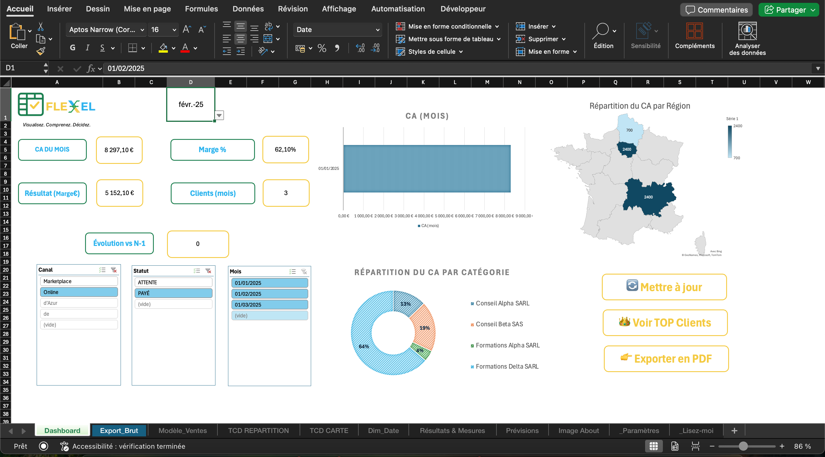 Flexel est un service spécialisé dans la création de fichiers Excel 100% personnalisés et automatisés. Peu importe votre activité (artisan, indépendant, TPE, PME), nous transformons vos besoins en outils fiables et faciles à utiliser.